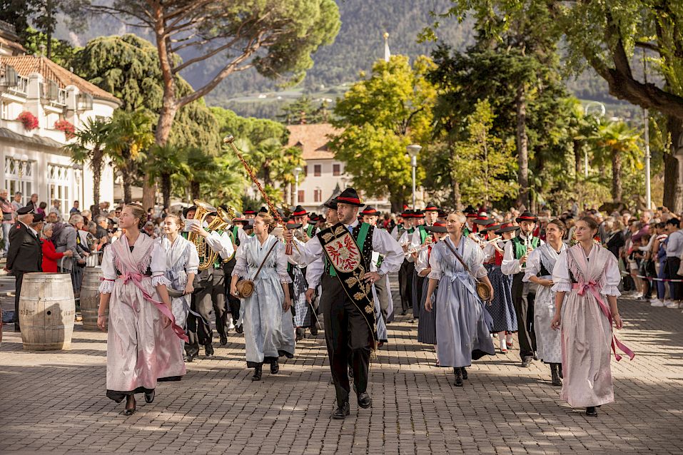 Wussten Sie schon, dass wir in Meran seit 1886 das Traubenfest feiern? Bei diesem schönen Erntedankfest wird Südtiroler Brauchtum gelebt und gezeigt. Mit traditionellem Umzug mit über 60 Musikkapellen, Tracht und Trauben.